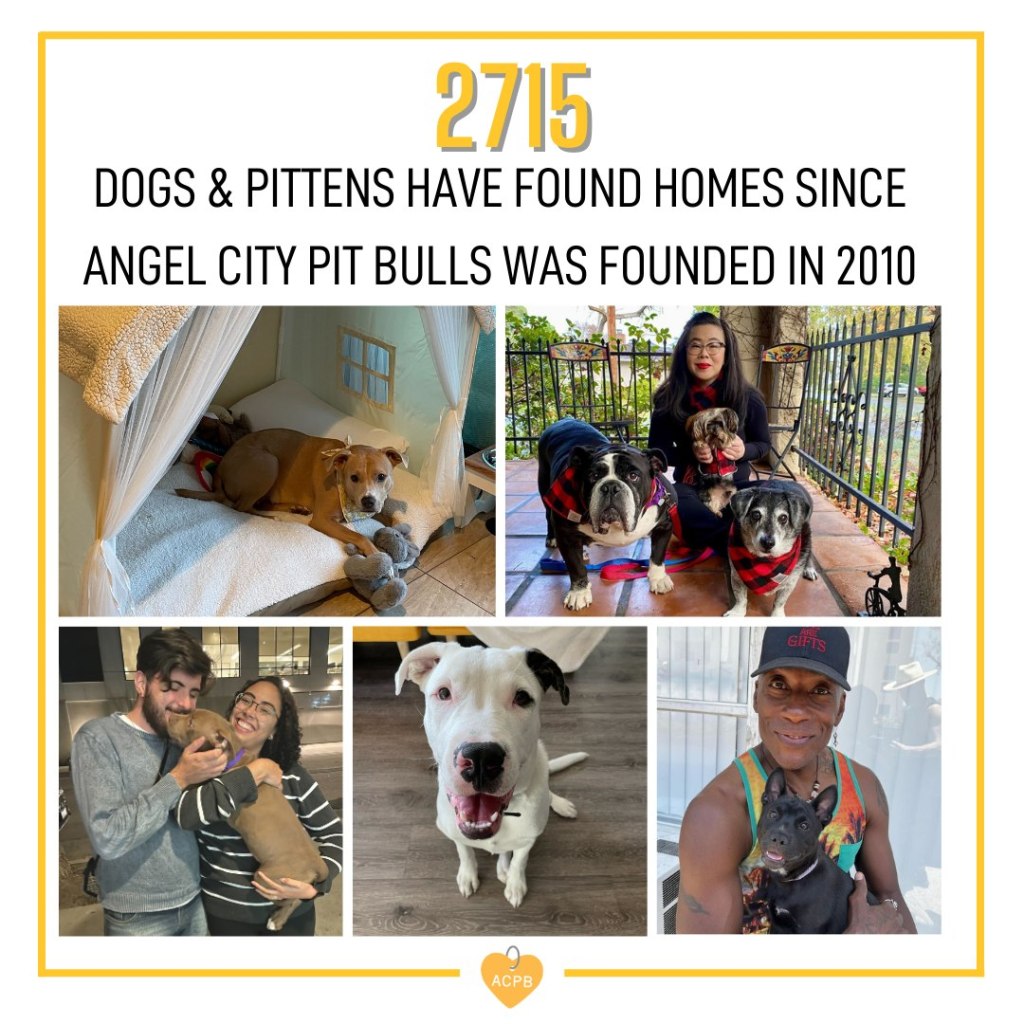 Established in 2010, Angel City Pit Bulls’ main objective is to advocate for pit bulls and other bully breeds that have been greatly affected by overpopulation and high euthanasia rates. Along the way, the rescue has expanded its efforts to include another vulnerable group in Los Angeles city shelters, by providing foster care for unweaned kittens (called “pittens”) until they are old enough for adoption. In 2022, ACPB was able to take in 216 dogs, and 275 foster “pittens.” Scroll through the slides below for more stats on their life-saving work!